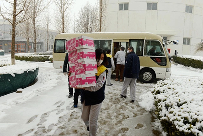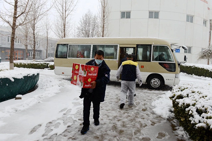 2月14日,北京普降大雪,北化集團工會(huì )、宣傳部安排三名同志,集團辦公室安排經(jīng)驗豐富的駕駛員,冒著(zhù)紛飛的大雪,滿(mǎn)載慰問(wèn)品,專(zhuān)程前往華騰化工園區和華騰橡塑公司進(jìn)行走訪(fǎng)慰問(wèn),為戰斗在疫情防控和復工復產(chǎn)一線(xiàn)的干部職工送上集團黨委、工會(huì )“娘家人”貼心的關(guān)懷和溫暖。