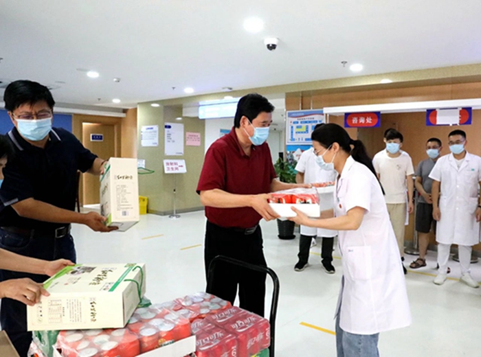 時(shí)值三伏酷暑,殷殷關(guān)愛(ài)情誼濃。受北京市總工會(huì )、北化集團黨委委托,集團黨委副書(shū)記、工會(huì )主席吳瑞峰,黨委常委、副總經(jīng)理孫紹剛分別帶隊,來(lái)到華騰橡塑、大興化工園區各企業(yè)、職防院,親切慰問(wèn)奮戰在生產(chǎn)經(jīng)營(yíng)一線(xiàn)的干部職工。