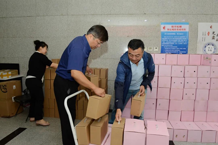 北化集團工會(huì )向所屬二級單位積極推薦沙峪溝村特產(chǎn)——農科院主推的無(wú)公害、高甜度的西瓜紅紅薯,以及當地經(jīng)濟作物——板栗。“消費廣告”的推出,立刻引來(lái)“圍觀(guān)”,各二級單位紛紛響應,9月17日至21日短短5天時(shí)間里,集團所屬22家二級單位陸續下單訂貨。9月25日,第一批紅薯和板栗送到了職防院、化研院和華騰新材料干部職工手中。在隨后的幾天里,王唯良與村民們一起起早貪黑,刨紅薯、摘板栗,稱(chēng)重、裝盒。一趟一趟地往返于北化集團各二級企業(yè)與沙峪溝村之間,將新農村建設的成果和一份份樸實(shí)村民的祝福送到干部職工手中。