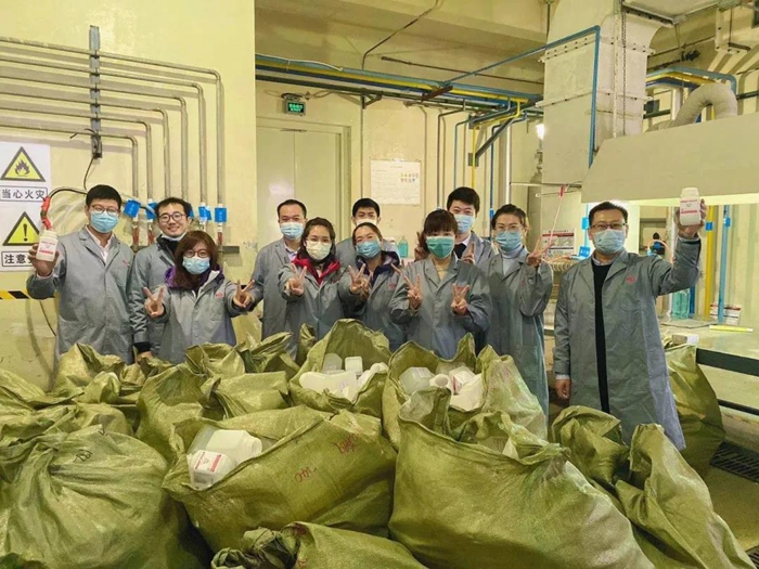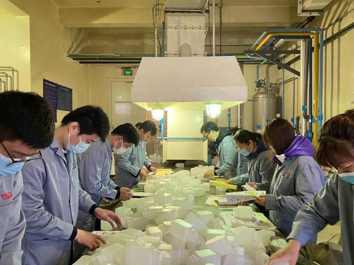 在聽(tīng)取化工廠(chǎng)黨總支書(shū)記王金華、副廠(chǎng)長(cháng)王云祥、安全總監李川介紹產(chǎn)品、貼簽安全相關(guān)事項后??偛繄F員青年們穿好工作服來(lái)到車(chē)間,經(jīng)過(guò)2小時(shí)的勞動(dòng),共貼簽6000個(gè),為企業(yè)生產(chǎn)貢獻一份綿薄之力。