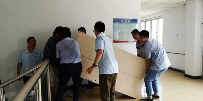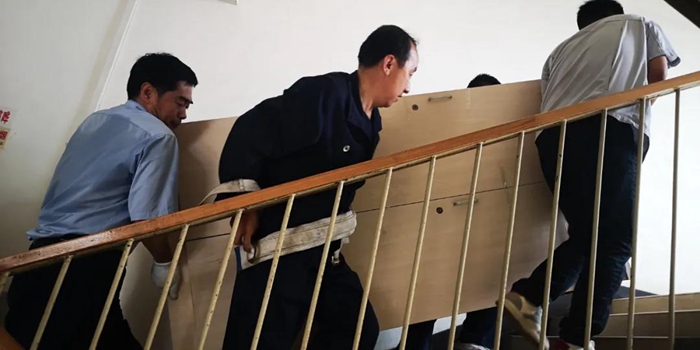 當日天氣十分潮濕悶熱,不動(dòng)都是一身汗,但是黨員同志們在周玉斌的帶領(lǐng)下,一件一件搬動(dòng)近兩米的衣柜,一步一步搬運至宿舍樓四樓。經(jīng)過(guò)大家的共同努力,終于將幾組衣柜搬運到了新員工宿舍,并細致地更換了柜鎖。
