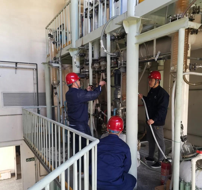 為搶抓市場(chǎng)機遇,試劑所干部職工放棄國慶部分休假,投入到緊張的設備維保和生產(chǎn)中。今年以來(lái),試劑所相關(guān)產(chǎn)品市場(chǎng)占有率持續提升,抓生產(chǎn)保供貨成為試劑所當前重點(diǎn)任務(wù)。試劑所多品種車(chē)間、高純試劑車(chē)間和后勤保障等部門(mén)的干部職工響應黨總支的號召,紛紛放棄國慶假日陪家人、外出旅游的機會(huì ),連續奮戰在崗位上,開(kāi)足馬力維護設備保運行。