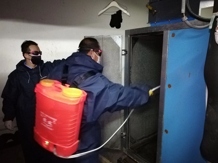 在大廈大堂,公司黨總支書(shū)記、總經(jīng)理、副總經(jīng)理、運營(yíng)總監現場(chǎng)協(xié)調指導,及時(shí)與公司辦公室溝通物資供應,事業(yè)部班子成員現場(chǎng)指揮調度,中控操作、樓內保潔消毒、空調消毒、客戶(hù)服務(wù)等各方面工作緊張有序推進(jìn)。
