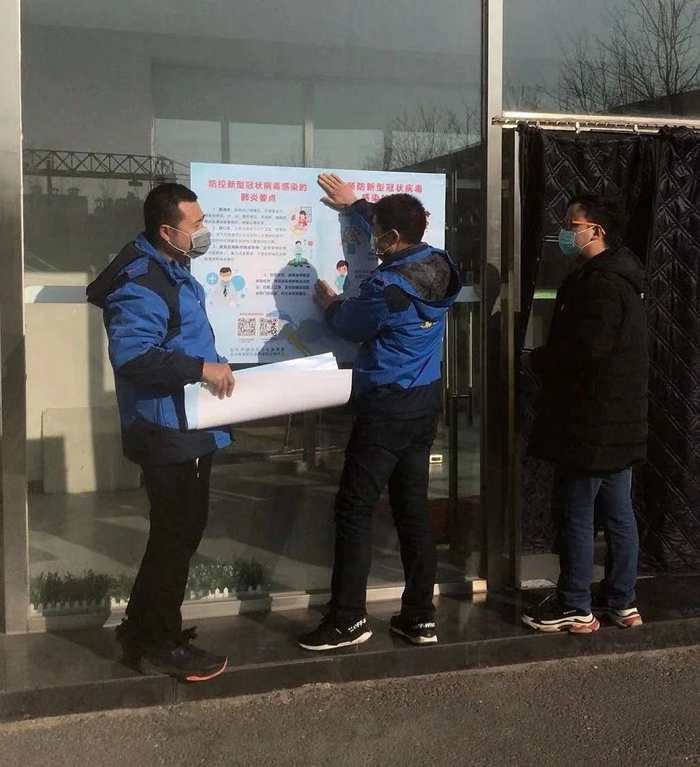 2月3日,北搪商務(wù)大廈商務(wù)中心的全體員工,在負責人朱娜的帶領(lǐng)下,檢查并協(xié)助物業(yè)管理公司對辦公區域進(jìn)行消毒和清潔,對12層以下的客戶(hù)進(jìn)行摸底排查,挨家挨戶(hù)進(jìn)行在崗人數調查并記錄上報事業(yè)部,在暫時(shí)無(wú)人辦公的客戶(hù)門(mén)上張貼關(guān)于做好疫情防控的緊急通知,同時(shí)以電話(huà)或微信方式,將通知有關(guān)內容傳達給客戶(hù),提示加強對去往疫情高發(fā)地區及接觸過(guò)疫情高發(fā)區的員工的教育,做好相應隔離防護措施,隨時(shí)溝通各自單位的防疫工作的最新動(dòng)態(tài)。