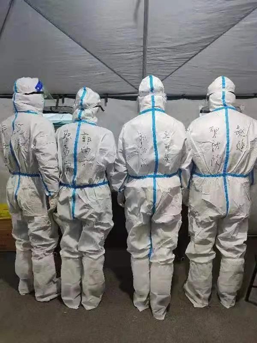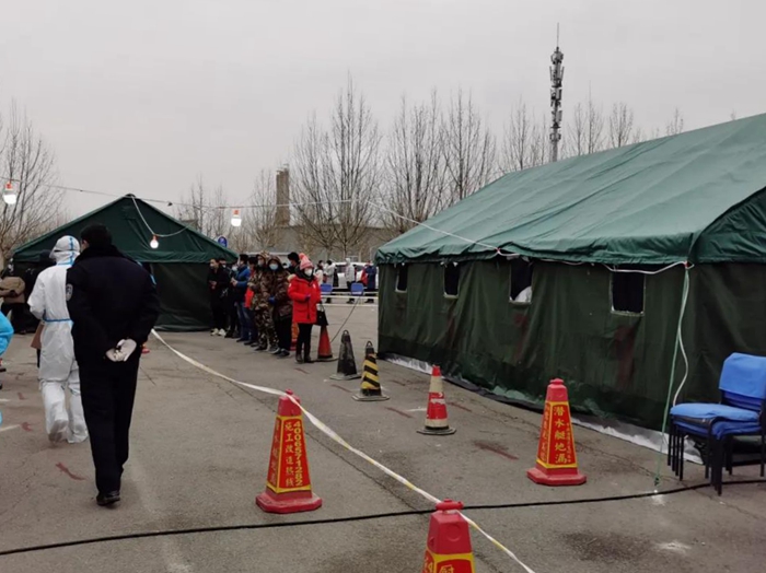 采樣期間,因人員較多,采樣工作都在室外進(jìn)行。工作在最低溫度達到零下10度左右的環(huán)境里,42名應急隊員穿戴全副武裝的防護服,不僅要直面寒冷天氣的侵襲,還要克服醫用防護服、醫用防護眼鏡、防護口罩等一層層防護用品所帶來(lái)的不便。