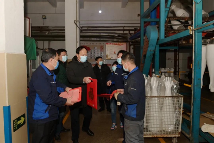 張時(shí)明一行考察了華騰橡塑公司生產(chǎn)現場(chǎng),華騰美居酒店的“暖心驛站”,親切慰問(wèn)堅守在一線(xiàn)崗位的職工和困難職工代表,帶去慰問(wèn)品的同時(shí)也送上了親切的問(wèn)候和真情關(guān)懷。