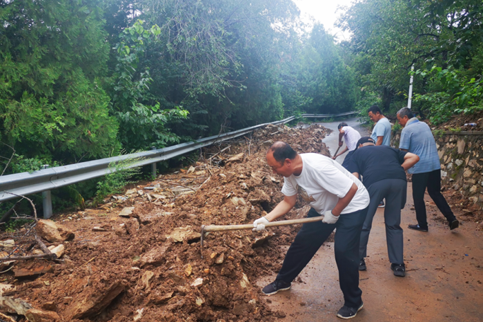 “杜蘇芮”剛過(guò),第一書(shū)記王云鵬便與中英水村兩委干部一起徒步往返十幾公里山路,開(kāi)展災情摸排,建立因災受損臺賬,將村里受災情況及時(shí)上報。在救災最緊張的那些天,王云鵬冒著(zhù)炎炎烈日,不顧“上蒸下煮”、蚊蟲(chóng)叮咬的惡劣條件,和村干部一起拿著(zhù)鋤頭、鎬頭、鐵鍬,清理因滑坡阻斷的村內道路。他們憑著(zhù)雙手,清理出幾十米長(cháng)、兩米多寬被落石泥土覆蓋的道路,給機動(dòng)車(chē)輛通行創(chuàng )造了條件。