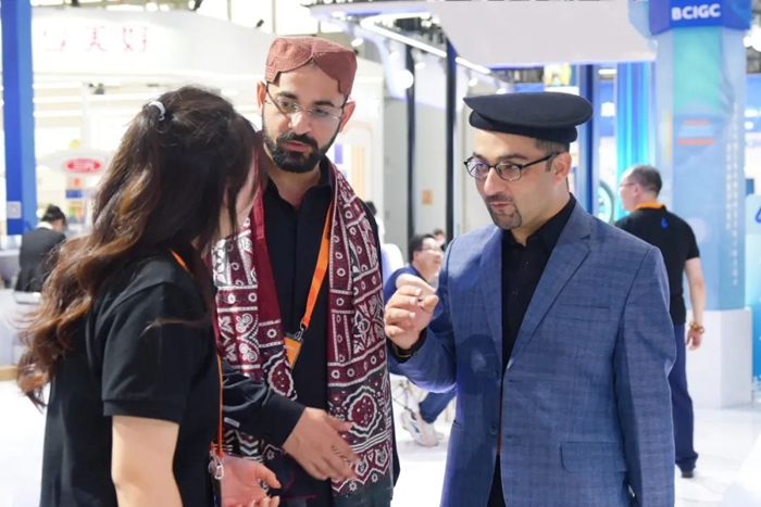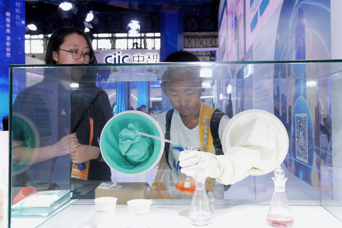 9月3日上午,北京化工集團外部董事專(zhuān)程到集團展臺參觀(guān);當天下午,北京化工集團領(lǐng)導班子成員及高管人員興致勃勃地來(lái)到集團展位參觀(guān)調研,他們或流連于展品前,或駐足于互動(dòng)展示屏前,仔細傾聽(tīng)集團團委組織的青年志愿者對集團“3+1”業(yè)務(wù)發(fā)展情況的介紹,大家表示,北京化工集團在國際性展會(huì )上展現化工形象、突顯化工價(jià)值,將對集團更好服務(wù)首都發(fā)展、做強做大四大產(chǎn)業(yè)鏈起到助推作用。集團總部及各二級單位紛紛組織干部職工專(zhuān)程走進(jìn)北京化工人自己的展臺,在自己研發(fā)、生產(chǎn)的一個(gè)個(gè)產(chǎn)品或項目前,在取得的一項項成績(jì)前,觸摸北京化工的發(fā)展脈搏,感受那份發(fā)自?xún)刃牡臉s光。