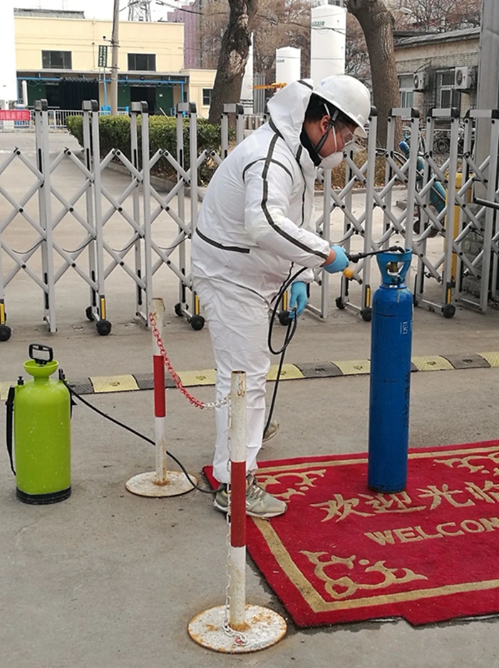 疫情發(fā)生以來(lái),華騰冀春按照北化集團黨委要求,全力做好疫情防控工作。公司在3天時(shí)間內購入口罩1000個(gè),消毒液16桶,測溫儀2個(gè),高壓噴水壺2個(gè),保障公司全體值班人員每天2個(gè)口罩的替換需求。自疫情爆發(fā)以來(lái),華騰冀春無(wú)一例確診和疑似病例。