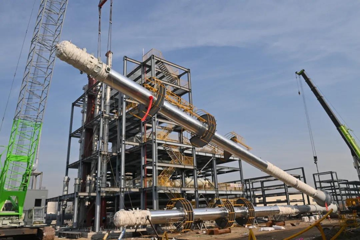 2021年12月31日,在北京化工集團2022年度工作會(huì )剛剛閉幕之際,集團50項重點(diǎn)項目之一——PAE(聚芳醚)項目建設取得階段性進(jìn)展。位于單體精餾單元的兩座精餾塔成功完成吊裝,在2021年最后一天,兩座核心裝置吊裝成功,不僅為京騰昊樺“大干100天,沖刺四季度”專(zhuān)項行動(dòng)畫(huà)上了圓滿(mǎn)句號,更標志著(zhù)PAE(聚芳醚)項目全面進(jìn)入設備安裝階段。